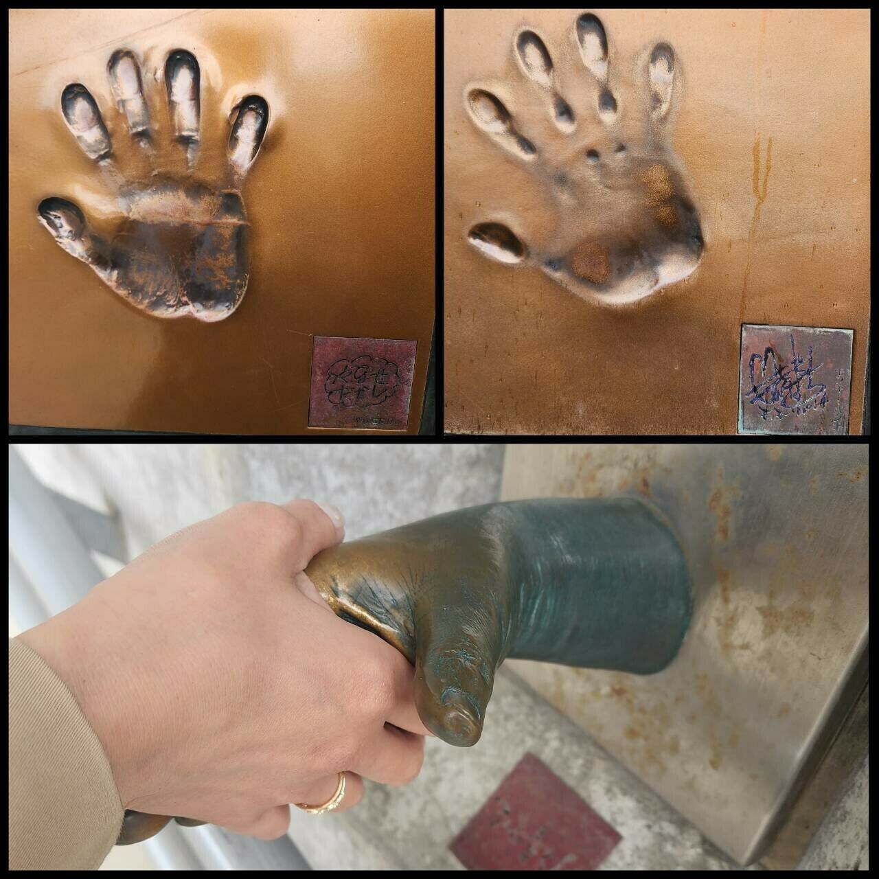 沢山の手形の先にはこの漫画ミュージアムの石ノ森章太郎さんと握手(ーー