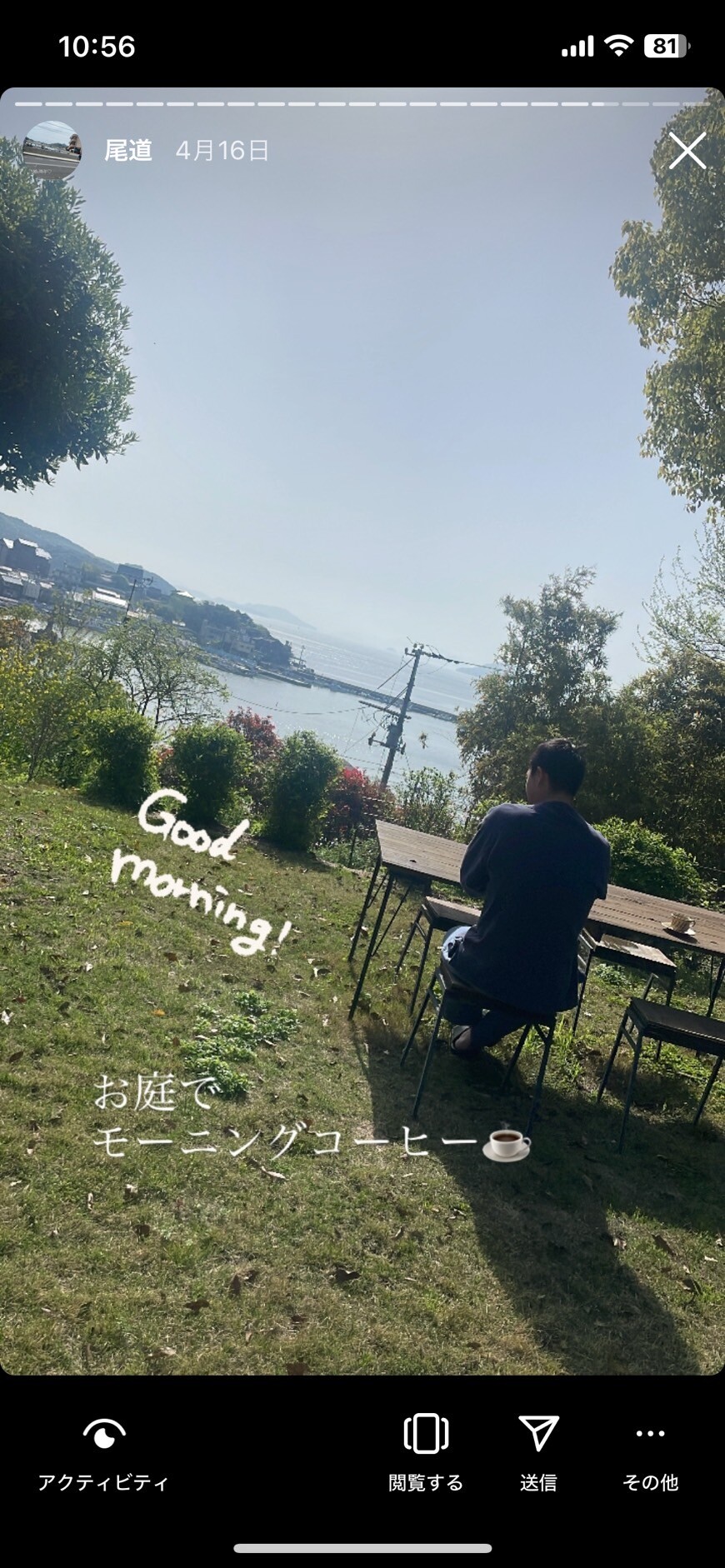朝はお庭で景色を見ながらのコーヒータイム。