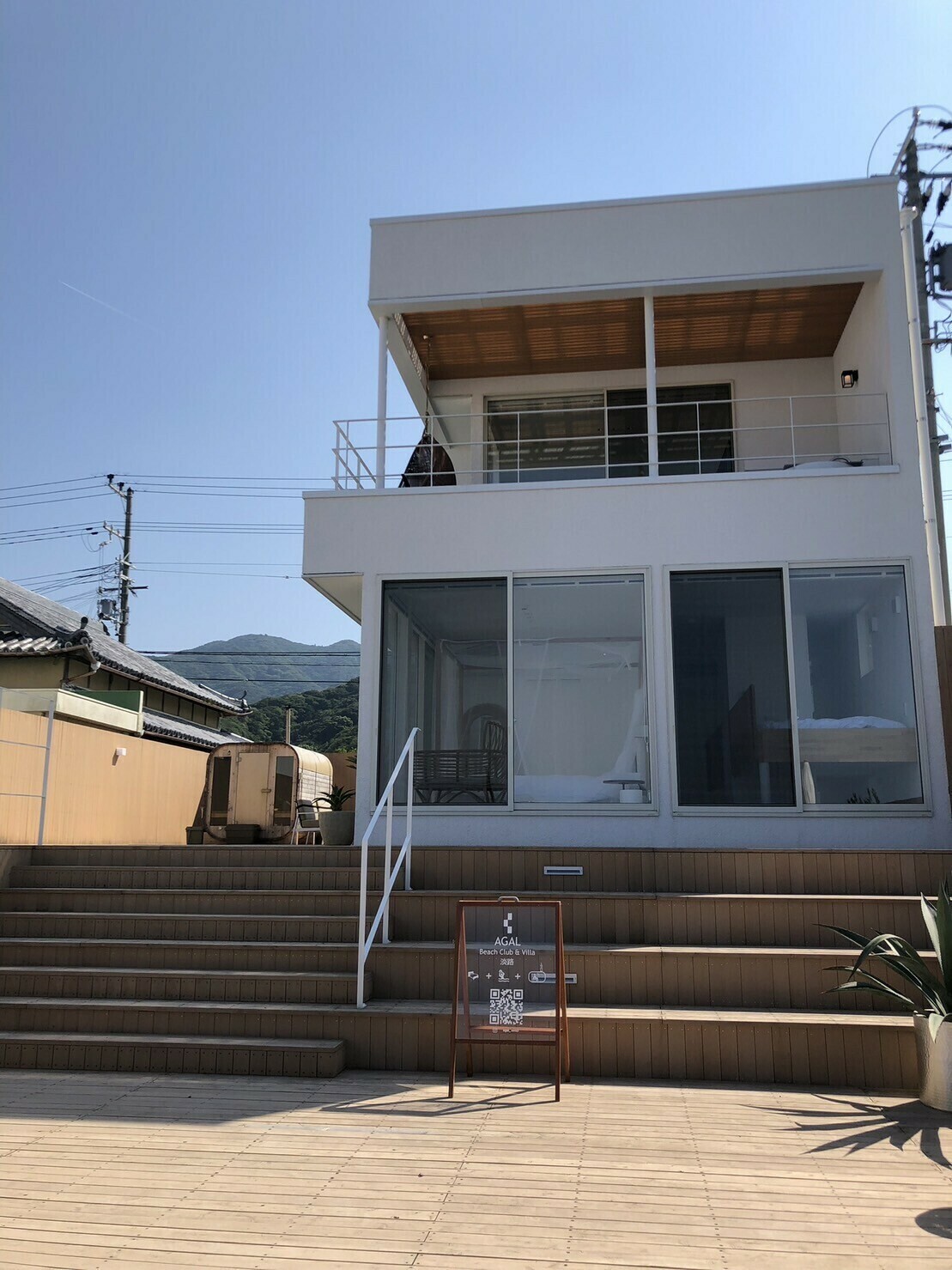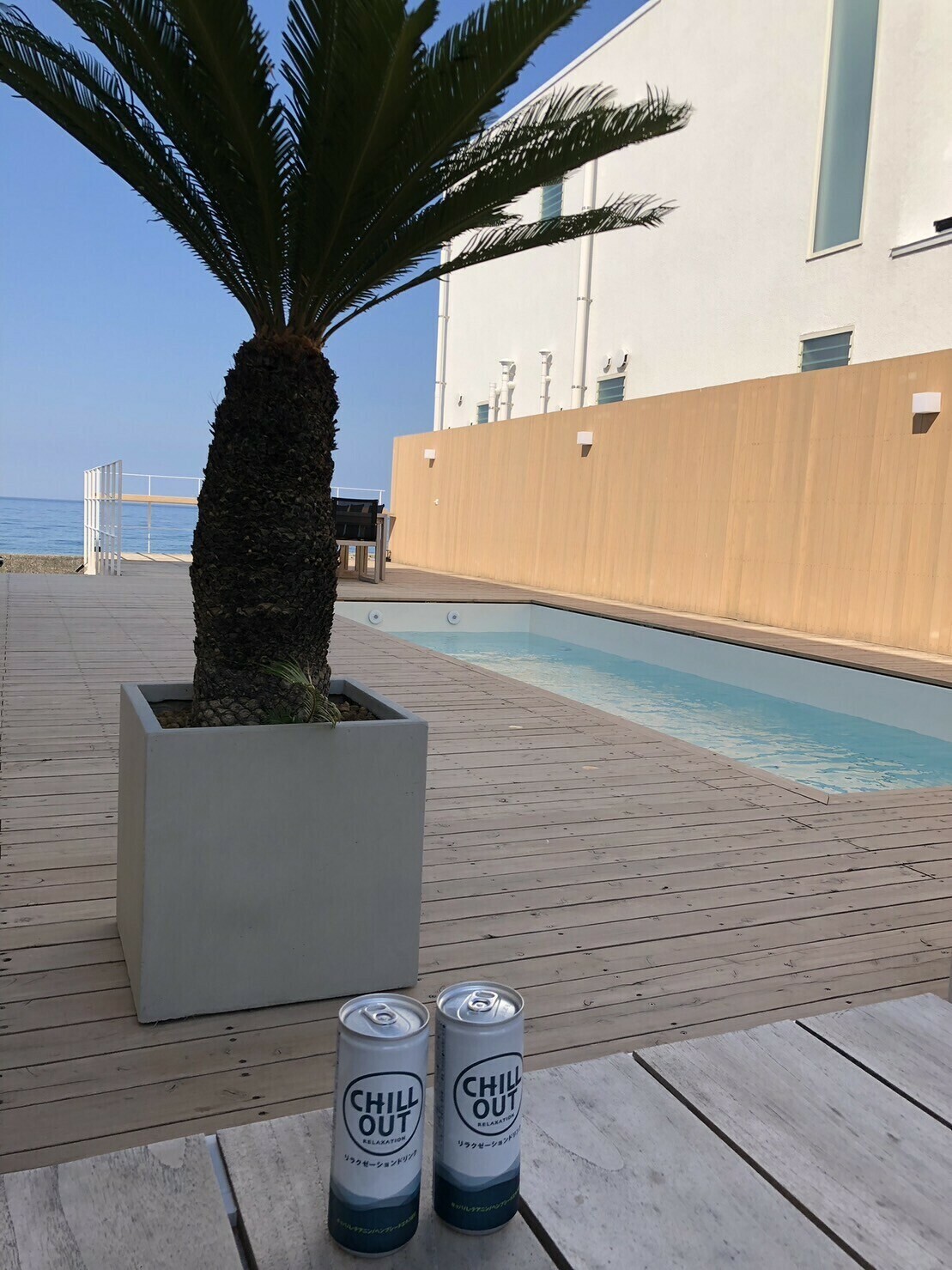 サウナとプールがついていて、テラスからは海が一望できる