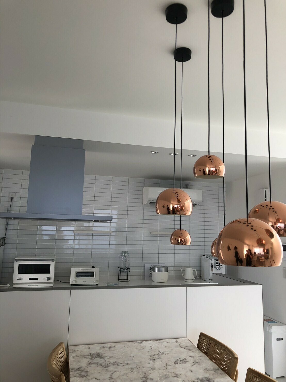 店内も広々でバリ風のタイルをコンクリート打ちっぱなしの左側の施術スペース、右側には、白を基調とした吹き抜け風スペース、シャンプースペースも濃い木目の落ち着いた暗めの照明でとお客様に座る席によって雰囲気も気分も変わる工夫をしてお客様のプライベート空間を心がけています。