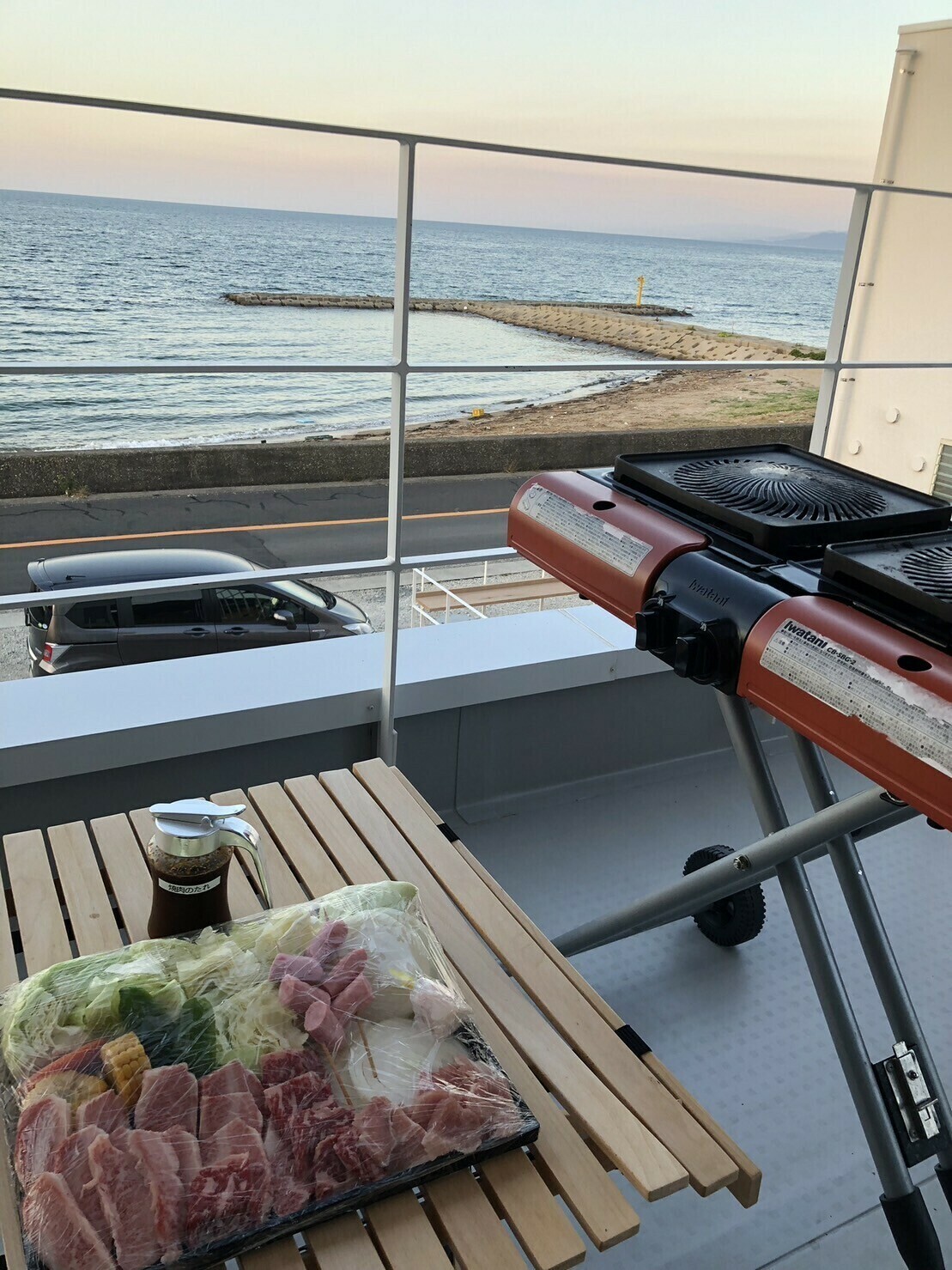 夜は海が眺められるテラスでBBQをしました☆