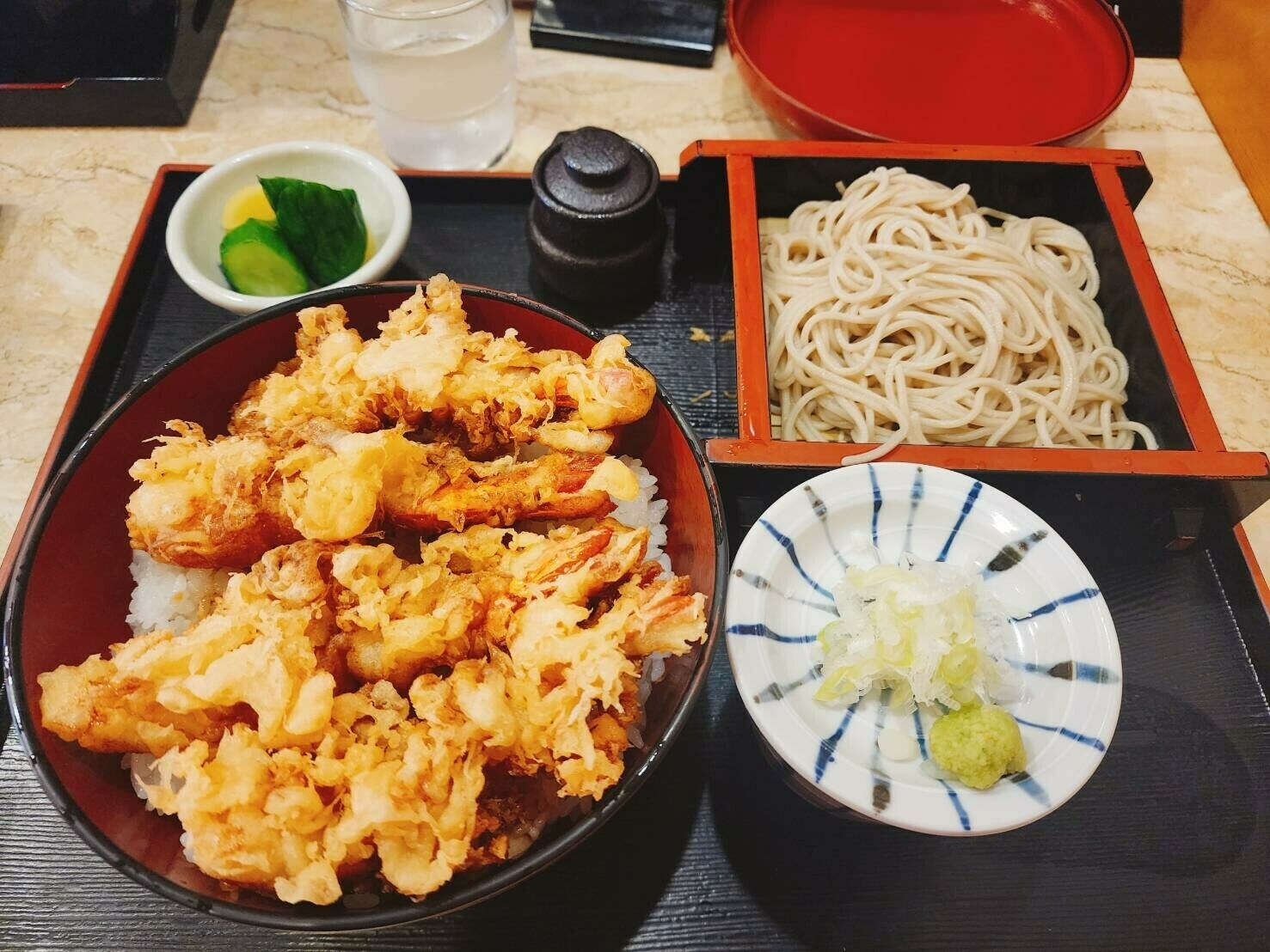 お蕎麦屋さんで海老天丼セットを食べてまずは腹ごしらえΨ( 'ω'* )