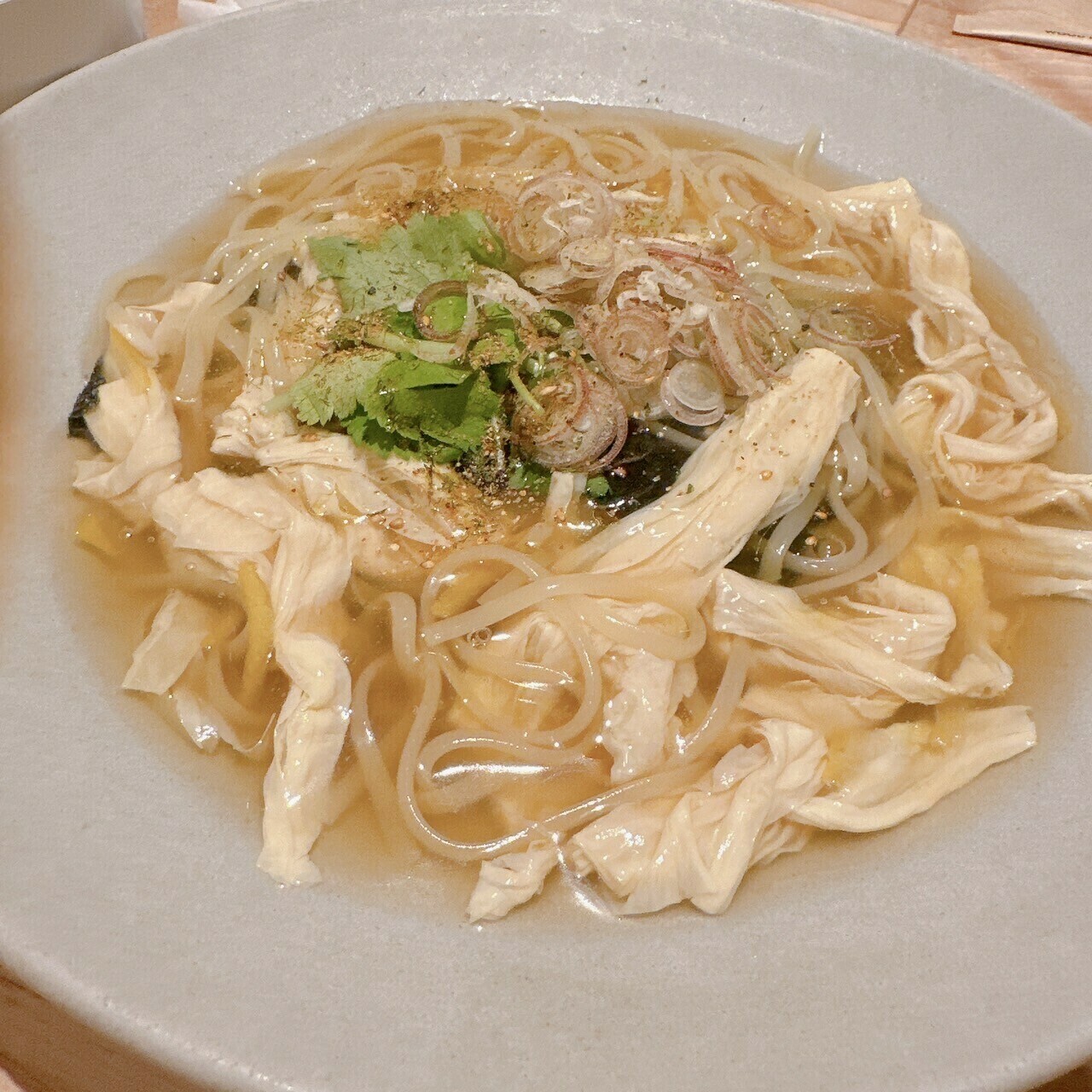 湯葉チーズあんかけと白いミートソースの生パスタにしました(^^♪