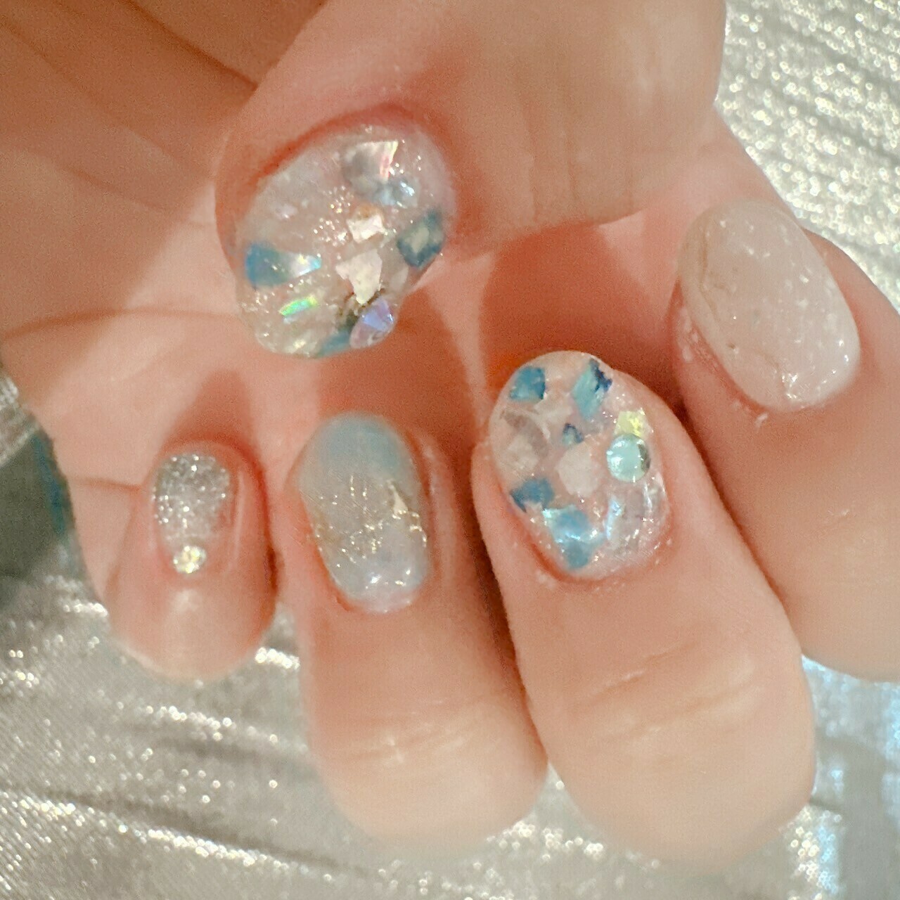 この暑さ少しでも涼しさをと思って今月のネイルはさわやかなブルーを(*´ω`*)