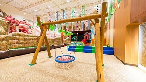 でっかいバルーンの遊び場に砂場やブランコがあったり