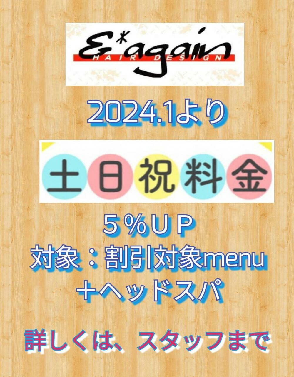 長さ料金別、ポイントメニューにも対応、税抜き表示なので税込みで頂きます。