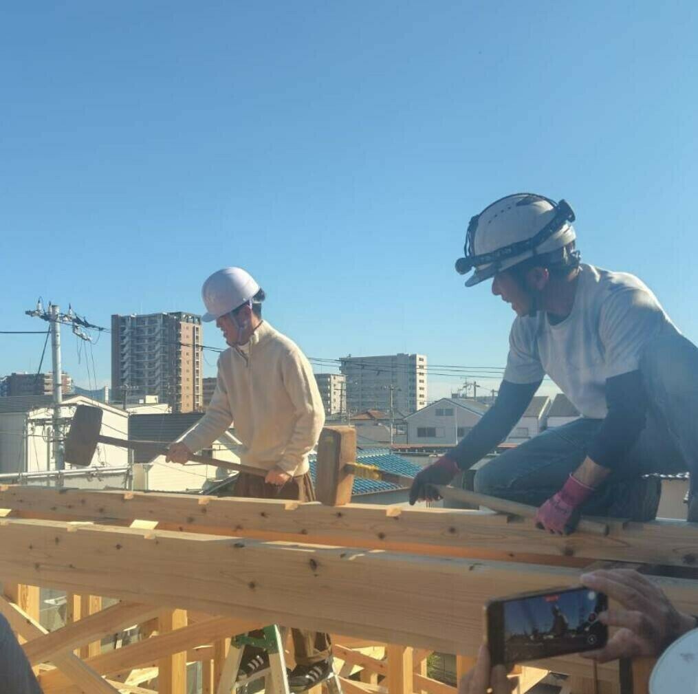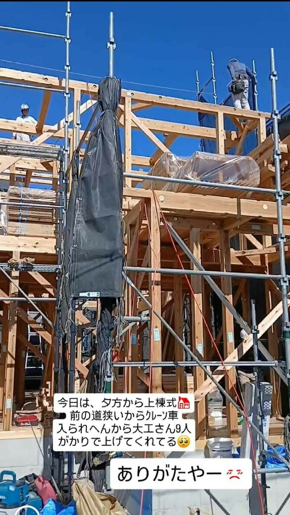 途中旦那さんは上に上り棟叩きというのを大工さんと一緒にしていましたヾ(・ω・)ゞ