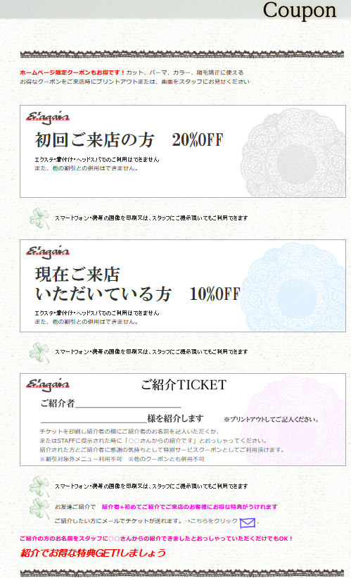 ご新規様にぜひお得なクーポンでお安くご来店してください