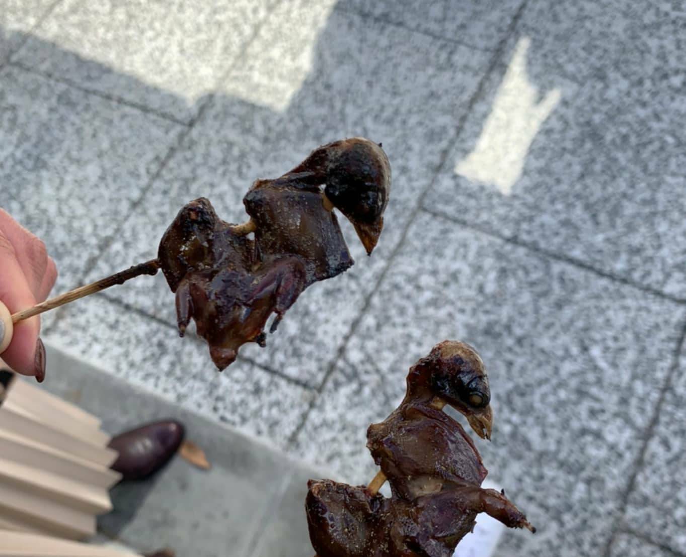 伏見稲荷も3回目ですが今まで横目にスルーしていたスズメの丸焼き。