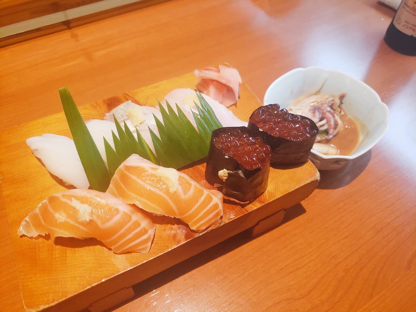 最初に食べたイカのワサビがききすぎて恥ずかしながらサビ抜きを次から注文。。。笑