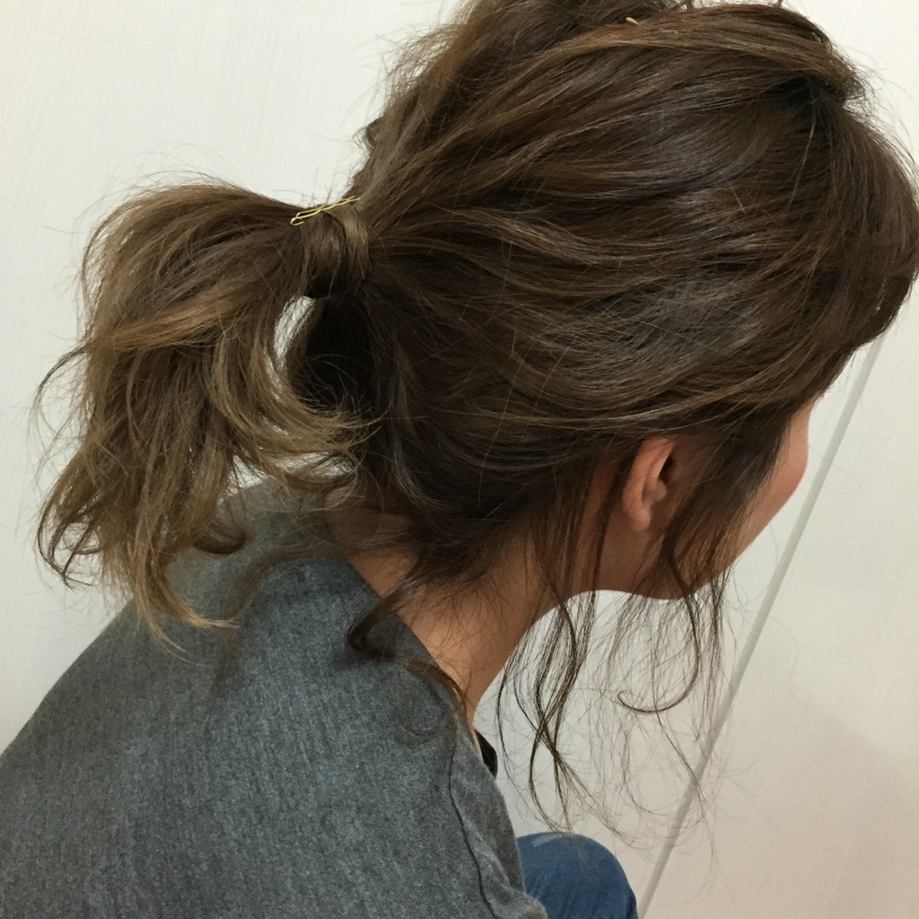 ひとつにくくるだけでもぴちっとくくるのとはイメージが全然変わったりするのでぜひルーズに後れ毛!!!!ためしてみてください!!!