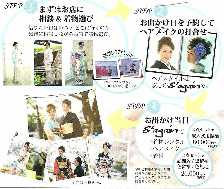 着物レンタルの仕方|大阪市東成区の美容室 &*again(アンドアゲイン)緑橋駅 徒歩3分