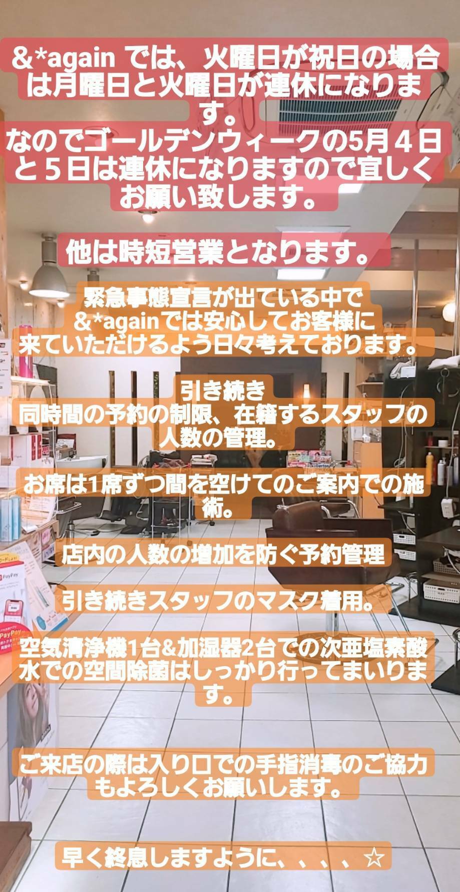 ゴールデンウィークコロナウィルス緊急事態宣言中の営業について
