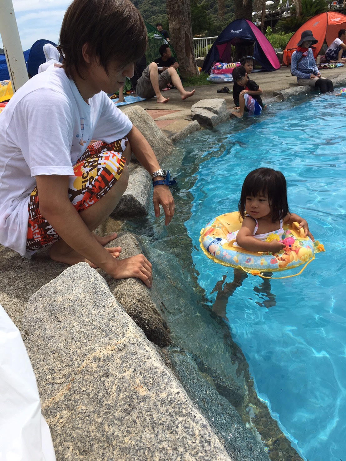最初は怖がってたものの浮き輪で安心したのか