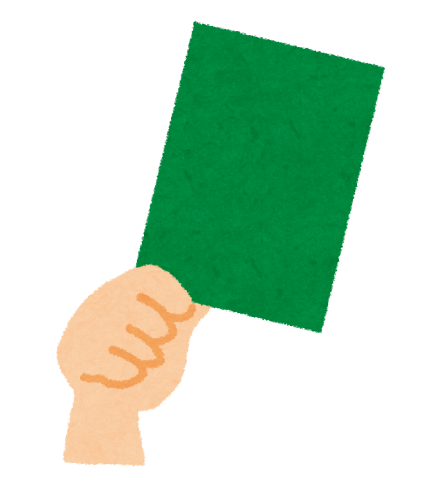 イエローカードは、危険なプレーなどに警告を促すときに使います