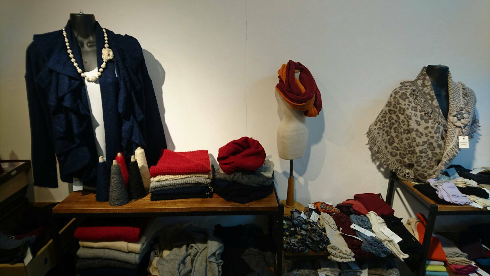 カシミヤやアルパカなどを扱われているので手触りもいいし何より暖かい( )