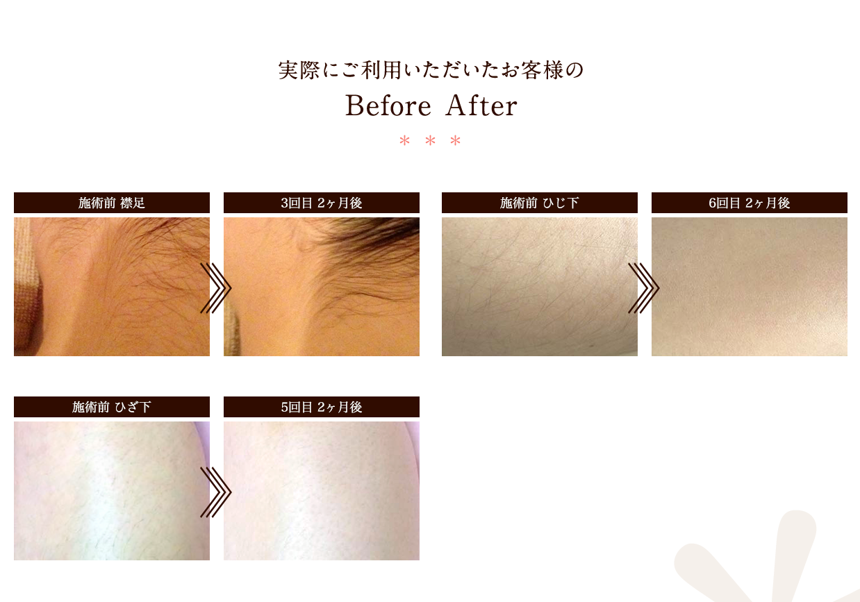 効果は、個人差がありますが女性のムダ毛程度だと3回目以降