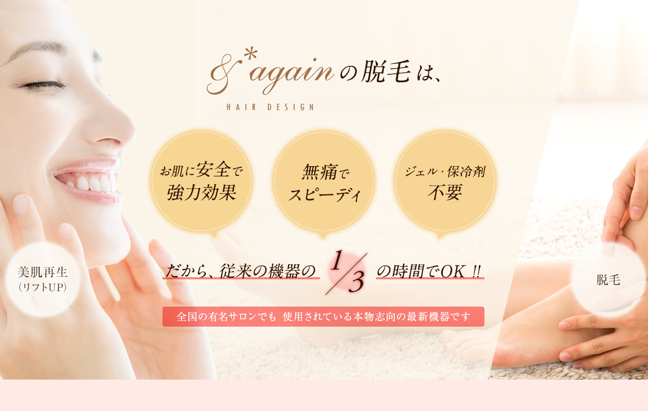 HAPPY NEWメニュー『光脱毛始めました』|大阪市東成区の美容室 &*again(アンドアゲイン)緑橋駅 徒歩3分