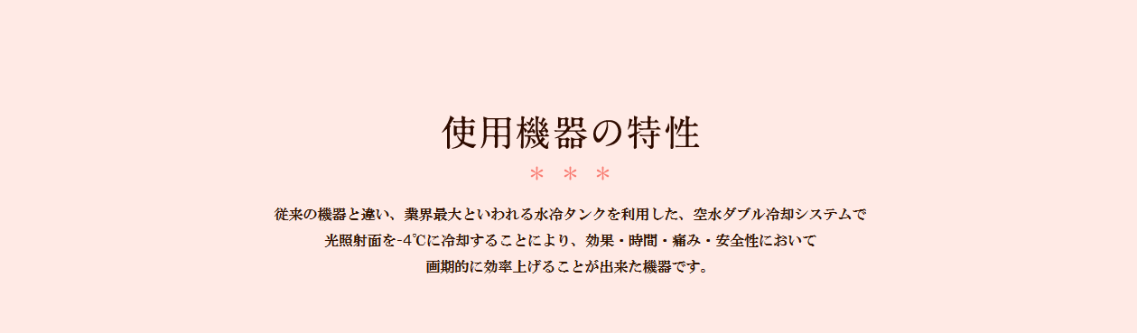 肌に触れる照射面が-4℃に冷却されているため、痛みを大幅に緩和し火傷の心配がありません