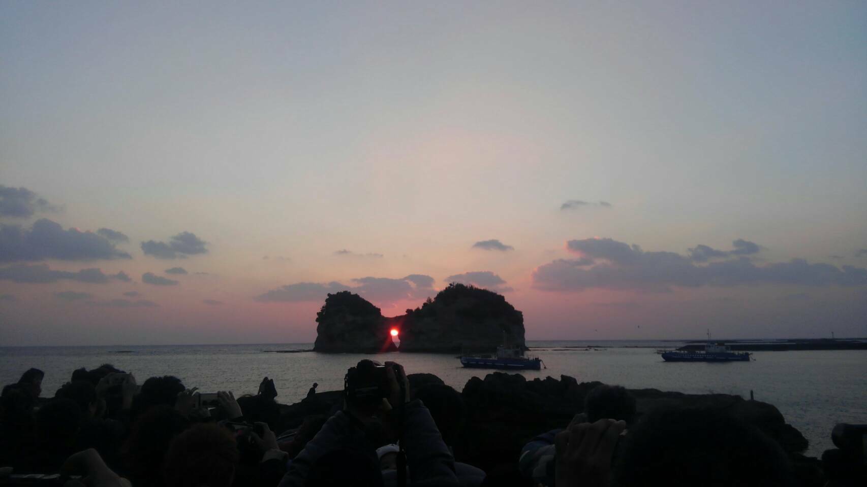 白浜を堪能している間に夕方になったので、円月島で夕日が真ん中に入るのを見るために急いでむかうと丁度入るところだったのでよかったです\(^o^)/