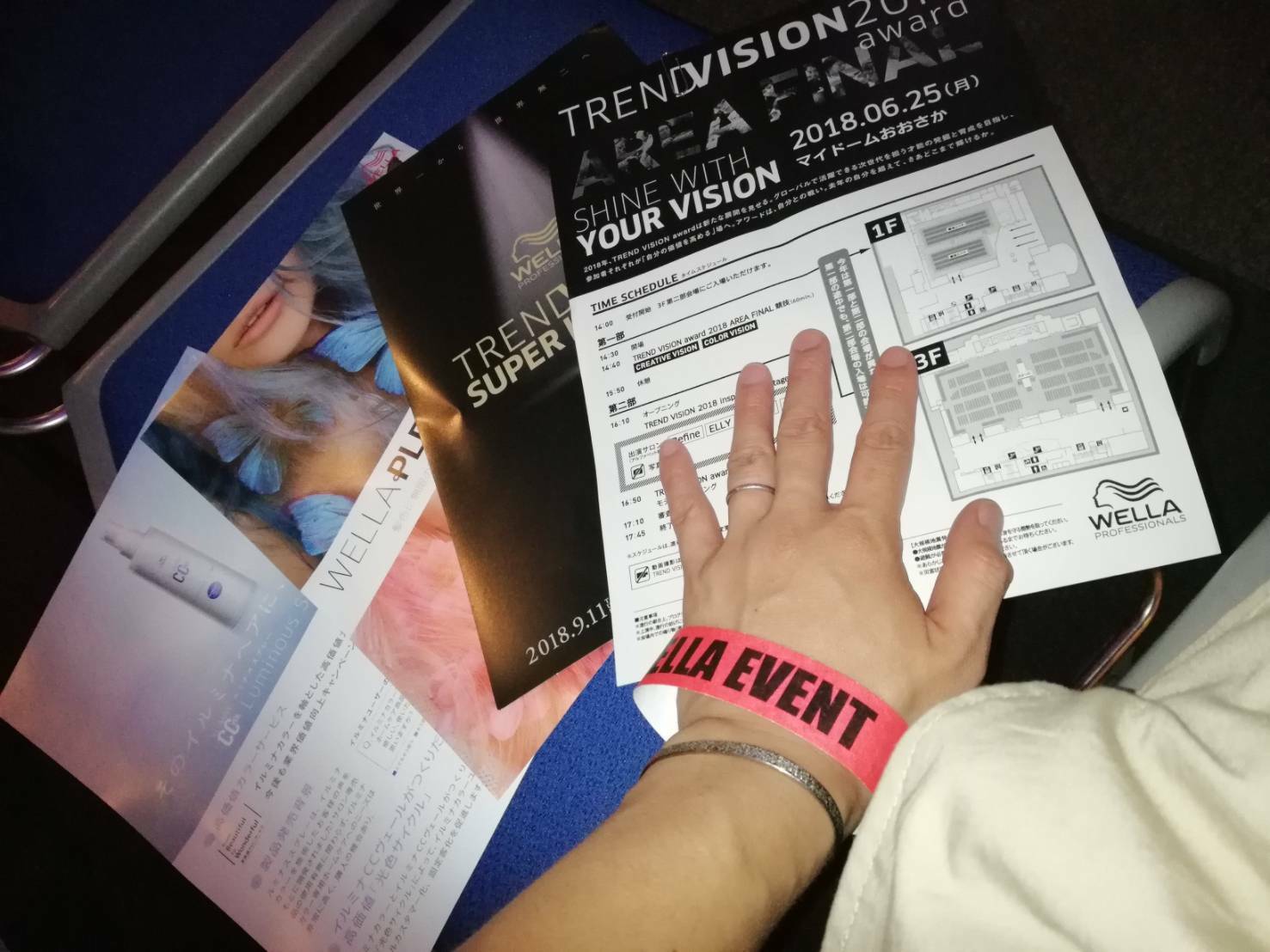 受付をすまし、入場のリストバンド装着してヘアーショー、結果発表の行われるステージの席をキープ!!