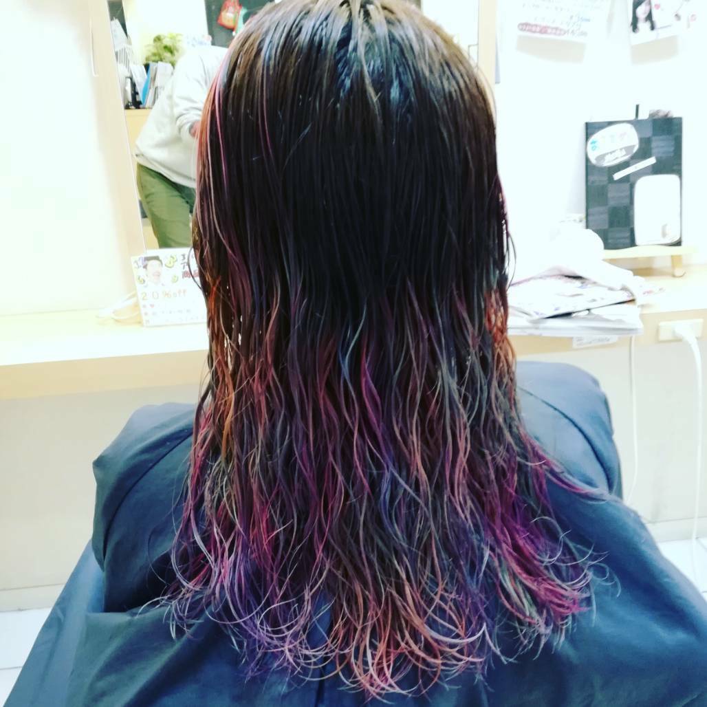 洗いあがりは、こんな感じに、一束ごとの間で僕の感性で塗り分けでイルミネーションカラーです°()°