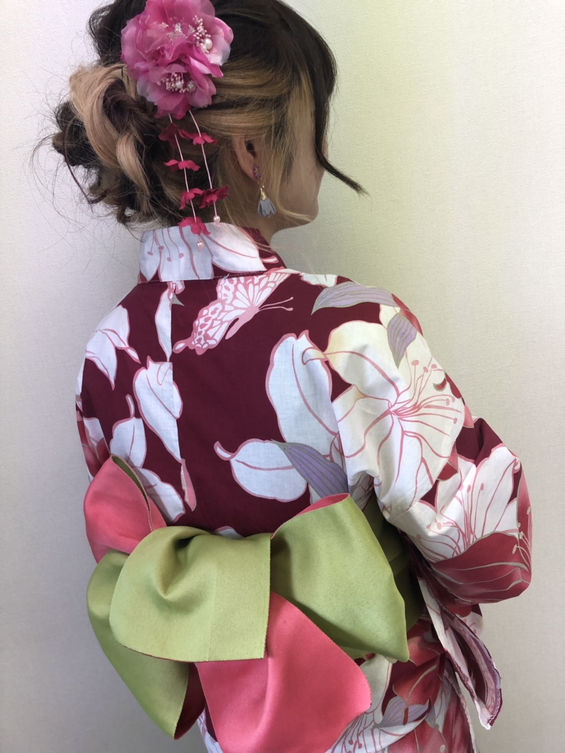 久し振りに浴衣を着てヘアセットをしてもらいました