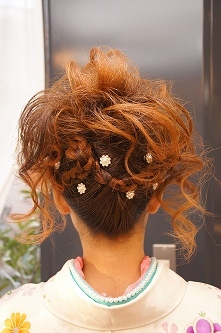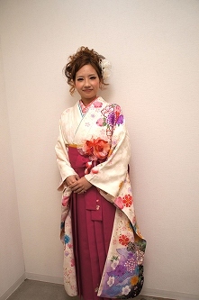 卒業式のヘアアレンジ、ヘアセット、お客様ヘア、袴の着付け、レンタル着物