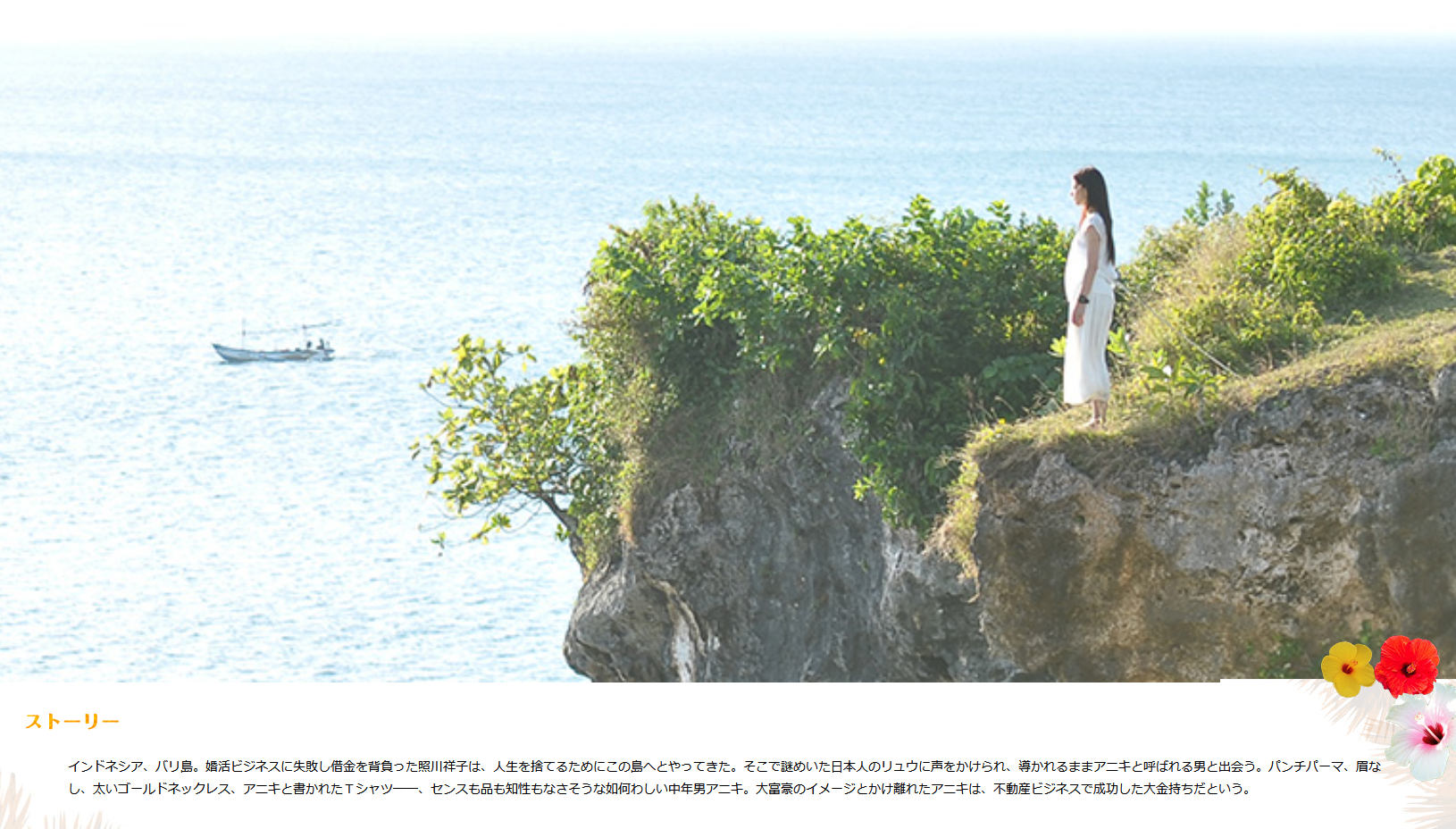 ストーリーとしては、インドネシアのバリ島に婚活ビジネスに失敗し借金を背負った主人公:照川祥子(尾野真千子)は、人生を捨てるため(自殺しようと)にこの島へとやってきた。