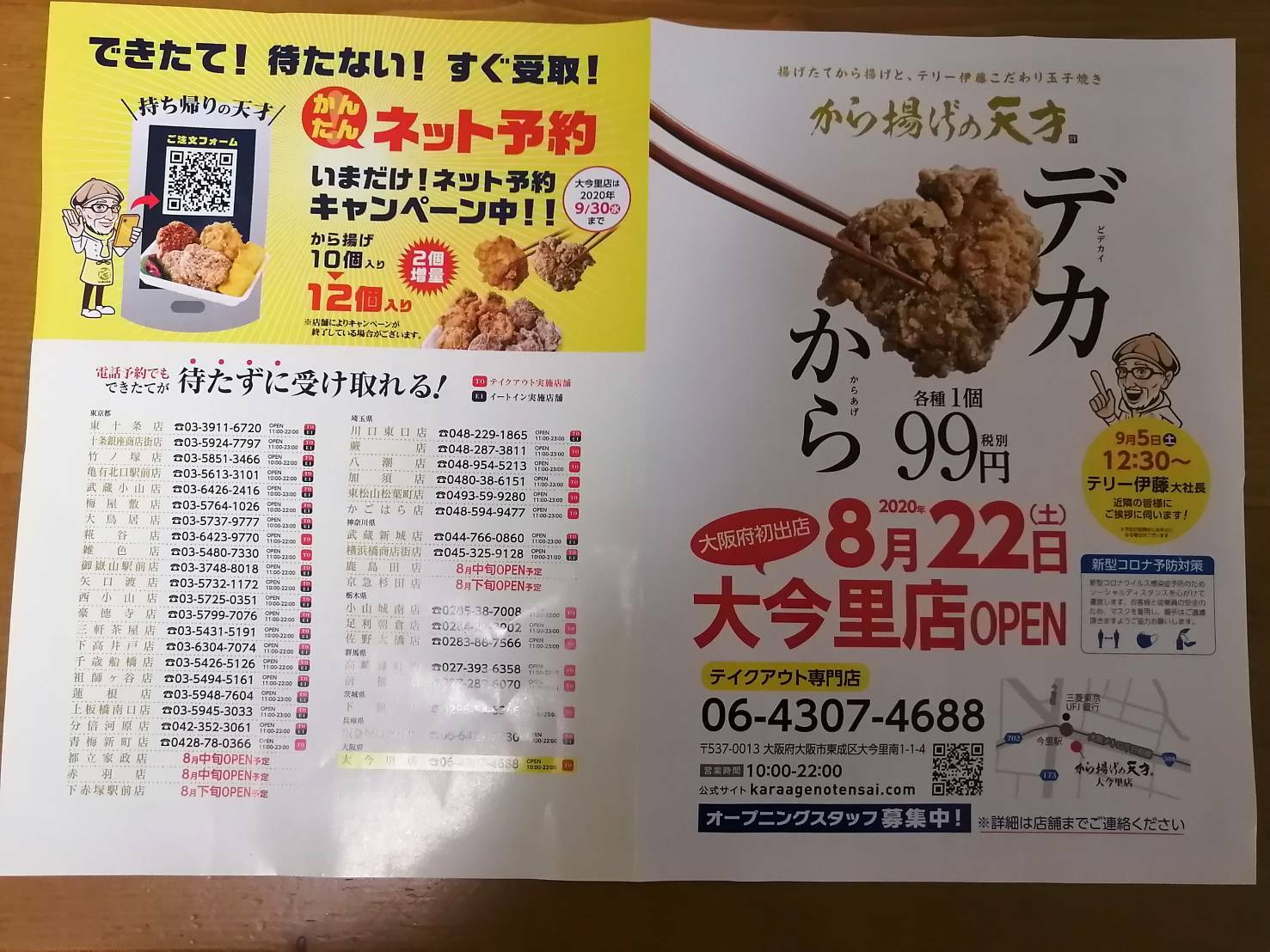 お客様から教えていただいたのですがタイトルにもありますが東成区の今里に芸能人のあのテリー伊藤プロデュースのから揚げ屋さんができたというので