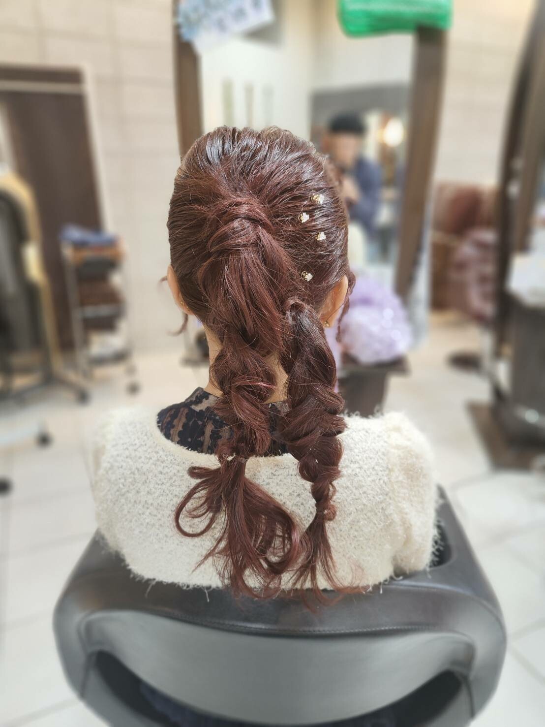こんにちは!大阪市東成区と城東区の間にある美容サロン「アンドアゲイン」です。当サロンでは、特別な日をさらに素敵に演出するヘアスタイルをお届けします。結婚式やパーティー、お祝い事などのイベントにもぴったり。経験豊かなスタイリストが、それぞれのお客様に合ったツインポニーテールや編み込み、三つ編みを提案いたします。