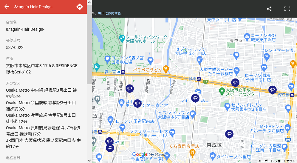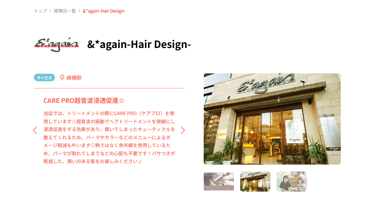大阪ポイント使える美容室&*again-HAIR DESIGN緑橋|大阪市東成区の美容室 &*again(アンドアゲイン)緑橋駅 徒歩3分