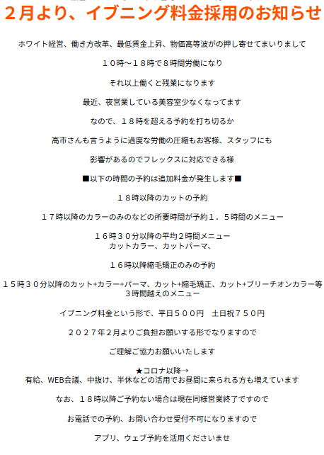 高市総理大臣もおっしゃるように過度な労働の圧縮もお客様、スタッフにも